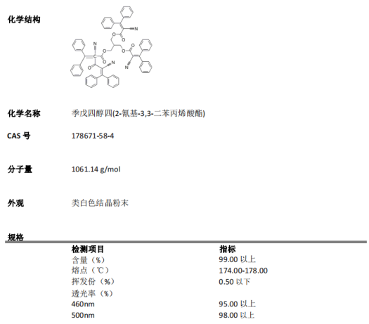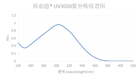 欧稳德® UV3030属于氰基丙烯酸酯系列UV吸收剂,可强烈吸收波长为 280-320nm 的紫外线。其大分子结构使其具有优异热稳定性,在加工过程中极低的析出性。安全性高,UV3030 是 FDA 和欧盟认证可以用于食品接触材料。