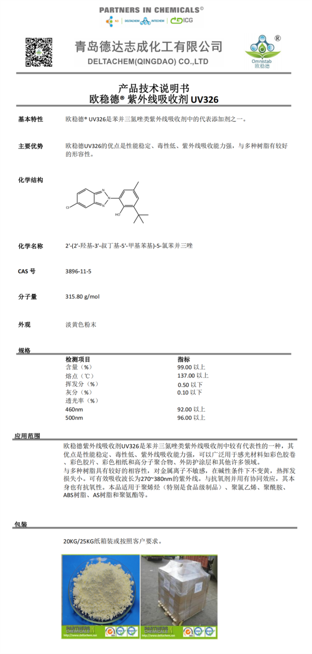 欲了解更多欧稳德® UV326产品信息及价格详情,欢迎随时致电咨询我司销售人员。青岛德达志成,为您的聚合物材料品质保驾护航!