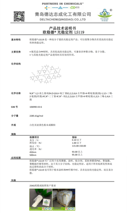 其中欧稳德® LS119是一种非聚合性高分子量的受阻胺类光稳定剂,能提高高分子材料光稳定剂。
