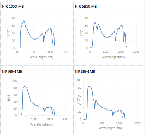 经过多年研发和市场验证,青岛德达特化集团欧稳德系列近红外线吸收剂母粒产品,能够满足更多客户的需求。欧稳德系列近红外线吸收剂母粒一共包含四款产品,NIR 1050 MB, NIR 6B50 MB, NIR 0BH6 MB, NIR 8BH6 MB。红外线吸收剂母粒,以现有近红外线吸收剂纯品为基础,同时复配现有其他功能性波段吸收剂,从而复配成多功能的PC母粒,产品吸收谱图如下: