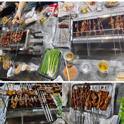 大家围坐烤炉,各秀烤肉手艺,撸串喝啤酒,彼此交流分享,体验了一把“方桌火炉小马扎,露天碳烤半自助”模式的正宗山东淄博烧烤。