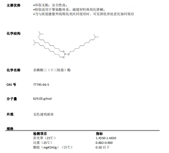 同时,欧稳德® 抗氧剂AN6133还可以作为高效的辅助稳定剂和螯合剂用于软/硬质PVC材料中,有效提高其加工热稳定性及光稳定性,保持制品的颜色稳定和透明度。是ABS、SBS、SIS、SEBS等橡胶材料的高效抗氧剂。