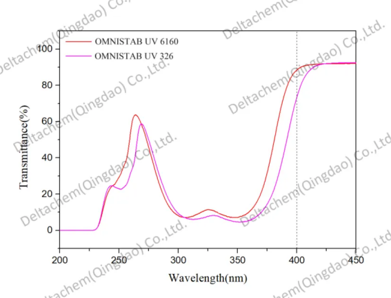 应众多客户的要求,我司也在积极地寻找应对策略,并且经过我司研发团队的不懈努力,目前已经开发出一款UV326的替代品----OMNISTAB UV6160,该产品符合REACH法规,能吸收300-400nm紫外线,与多种树脂相容,可以同时用于工业品和化妆品,且与UV326的吸收谱图几乎一致,能满足大部分配方中UV326的替代要求,一经推出,解决了众多客户的“燃眉之急”。