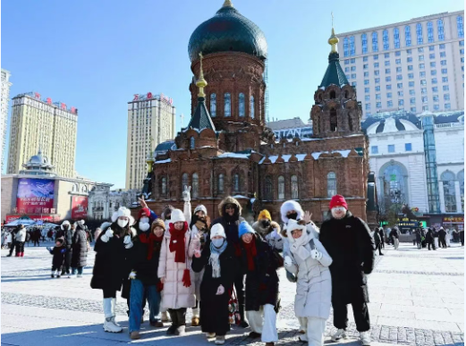 抵达哈尔滨后,我们先来到了被誉为“东方莫斯科”的中央大街。漫步在铺满面包石的街道上,两侧是充满异域风情的欧式建筑,仿佛置身于浪漫的欧洲小镇。大家品尝了正宗的马迭尔冰棍,感受冰天雪地中的“火热”甜蜜。