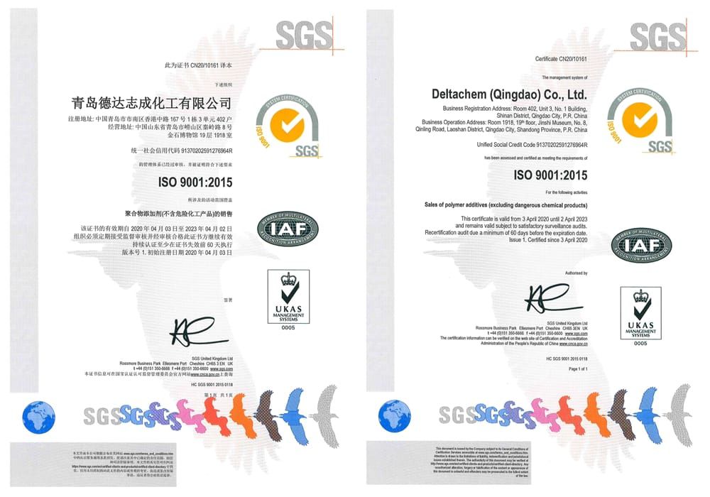 青岛德达志成化工有限公司自2015年首次获得ISO 9001:2008质量管理体系认证后,始终参照ISO质量管理的标准完善企业管理。近期,考虑到ISO质量标准的优化更新及公司经营范围的扩大,青岛德达志成化工有限公司为持续规范管理标准、拓展公司业务,向全球权威认证机构——SGS认证(瑞士通用公证行)申请进行最新的ISO 9001:2015质量管理体系再认证。