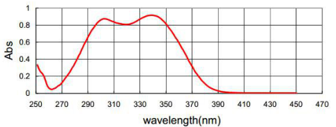 UV 571在300-400nm紫外区内有强吸收,而在大于400nm的可见光区内吸收非常小,其在氯仿溶液中的最大吸收峰在303nm和343nm。