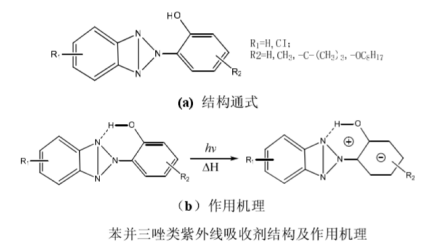 苯并三唑类紫外线吸收剂具有较高的摩尔消光系数、耐变色、耐油、毒性小、挥发性低,与聚合物有良好的相容性,被广泛应用于各种涂料和塑料制品中,在紫外线吸收剂中占主导地位。