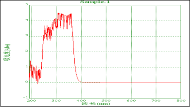 可清晰看出UV1577在UV-A和UV-B范围内(280-400nm)的紫外光有强吸收,从而可以覆盖大多数聚合物的敏感波段从而给予材料最有效保护,延长高分子材料制品的使用寿命。