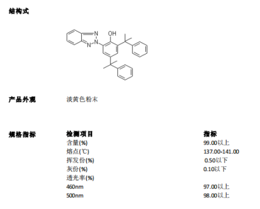 OMNISTAB UV234是羟基苯并三唑类紫外线吸收剂一种,能吸收 300 - 380 nm范围的UV波长以达到保护高分子化合物的功能。由于它有超高的耐热性,对于需要在高温下加工的聚合物具有非常好的效果,如聚碳酸酯,聚酯,聚缩醛,聚酰胺,聚亚苯基硫醚,芳烃共聚物,热塑性聚亚胺脂,聚氯乙烯,苯乙烯等,受到极广泛的应用。