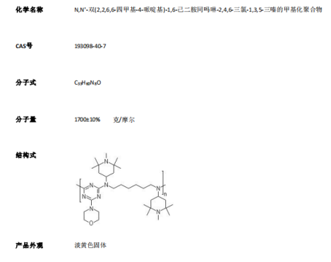 1、低聚物HALS添加剂,可为聚合物提供长期紫外线防护和热防护
